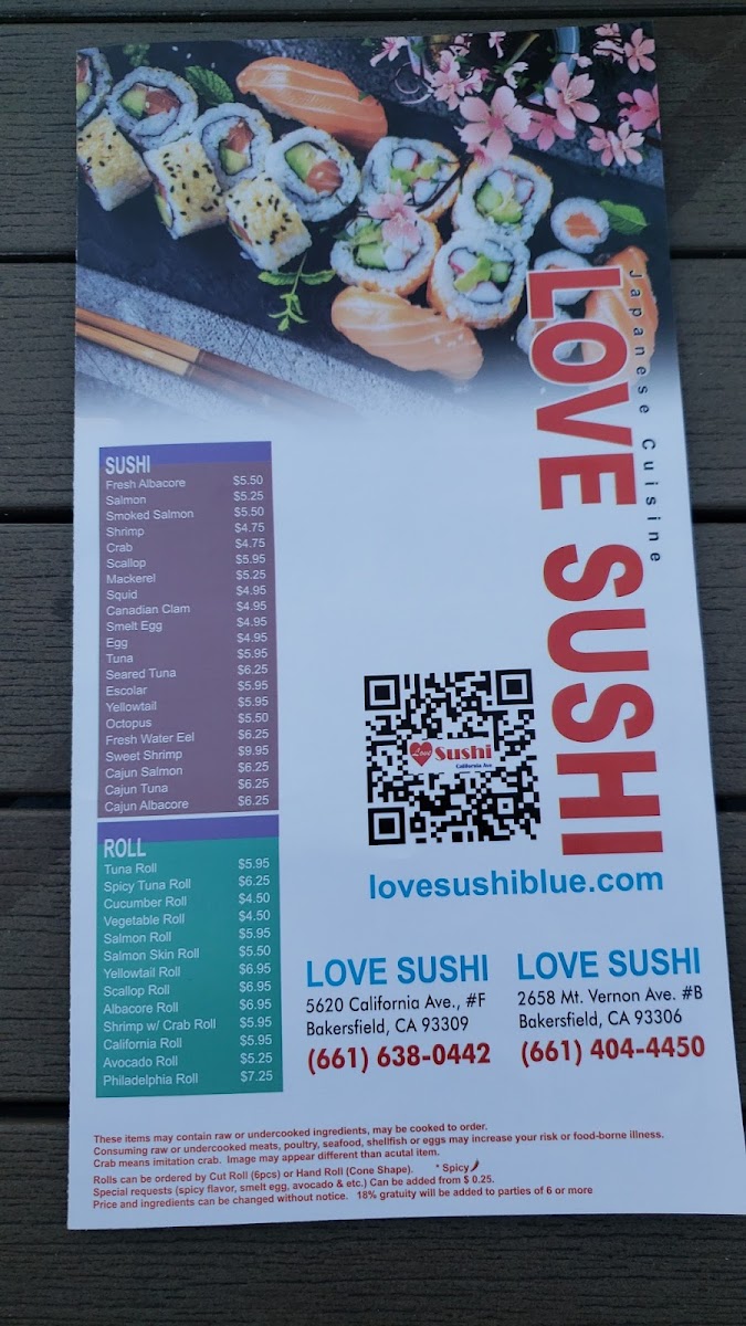 Welcome to Love Sushi - Bakersfield, where culinary passion meets exceptional service. Nestled in the heart of Bakersfield at 2658 Mount Vernon Ave, this sushi haven offers a delightful array of fresh options. Indulge in expertly crafted sushi like the Seared Tuna ($8.75) or the velvety Yellowtail ($9.25). For raw enthusiasts, the Seared Albacore Sashimi ($27.95) highlights the delicate flavors of the ocean.